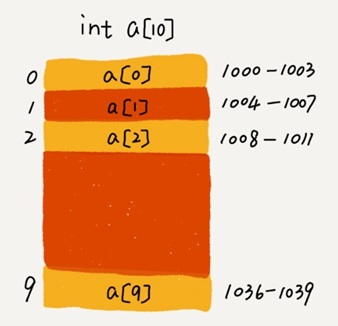 a[i]_address = base_address + i * data_type_size- data_type_size 表示数组中每个元素的大小。