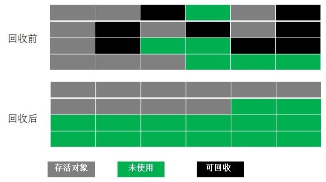 而老年代因为每次只回收少量对象,因而采用 Mark-Compact 算法。